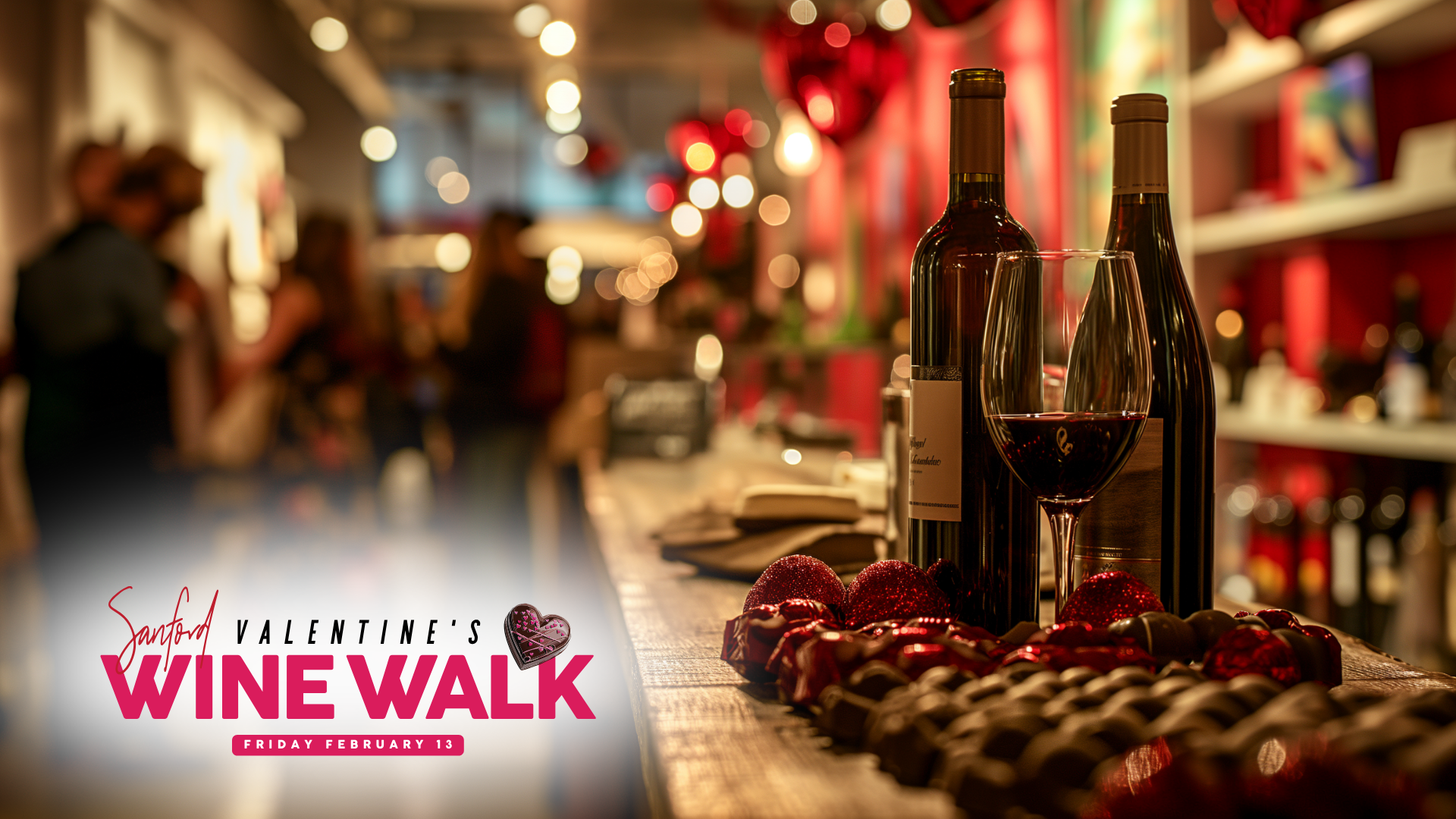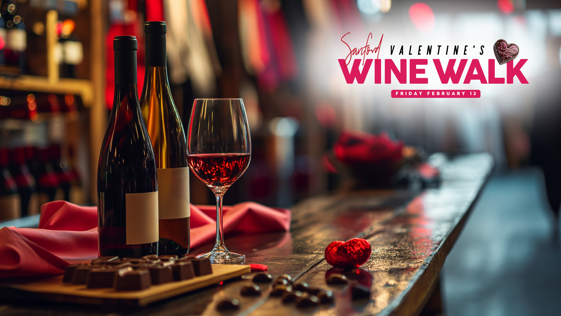 Love is in the air 💞 Stroll with us through a love-filled wonderland at the Sanford Valentine’s Day Wine Walk in Downtown Sanford! This heartwarming event invites you to bring your Valentine (or Galentine(s)!) for a night of wine and chocolate (the ultimate romantic combo). 🍷🍫